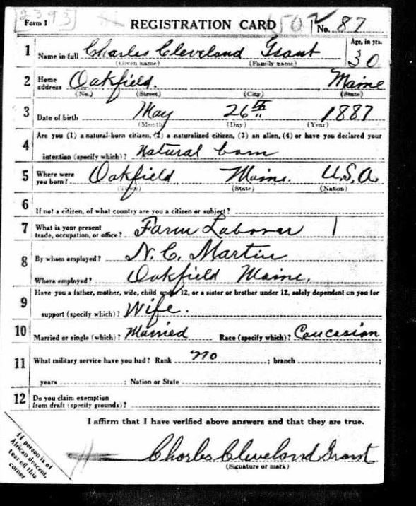 Unlike his sister, he appears to have remained with his family, listed only in the 1920 U.S. Federal Census in Presque Isle, Aroostook County.