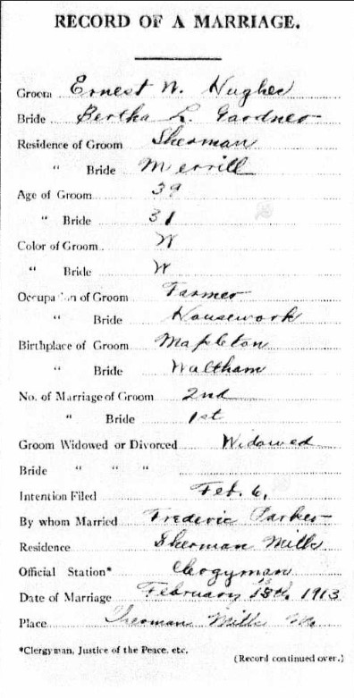 Benjamin and Shirley were married on the 24th of June, 1921 in Smyrna Mills, Aroostook County. They would settle here for the remainder of Benjamin’s life. At some point after this, Shirley moved to Connecticut, where she remained for the rest of her life.